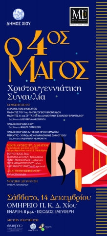 Ο Δήμος Χίου σε συνεργασία με τη Μούσα Ελληνική παρουσιάζουν τη μουσικοθεατρική παράσταση ο 4ος Μάγος, συνδυάζει αρμονικά την ελληνική παραδοσιακή μουσική με την ευρωπαϊκή και συγκεκριμένα με το έργο "Καρυοθραύστης".