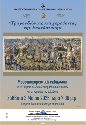 Με αφορμή τα 100 χρόνια από τη γέννηση του Μίκη Θεοδωράκη και στο πλαίσιο της Παγκόσμιας Γιορτής Αιγαίου θα πραγματοποιηθούν εκδηλώσεις στη Χίο, Οινούσσες και Ψαρά. Με σκοπό την τουριστική προβολή της Χίου, Δήμος Χίου με την υποστήριξη της Γενικής Γραμματείας και Νησιωτικής Πολιτικής και σε συνεργασία με τον απόγονο του ήρωα της Ελληνικής Επανάστασης Κωνσταντίνου Κανάρη Michel Marbot θα πραγματοποιηθεί συναυλία με τον Στέφανο Κορκολή και τη Σοφία Μανουσάκη. Συμμετέχει η Στρατιωτική Μουσική Φρουρά Αθηνών.