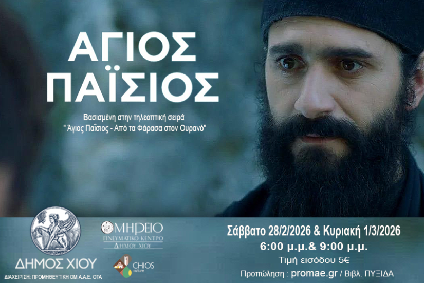 Προβολή της ταινίας "'Αγιος Παϊσιος" σε σκηνοθεσία Στάμου Τσάμη. ΕΛΛΑΔΑ/2026/ΕΓΧΡΩΜΗ/ΔΡΑΜΑ ΙΣΤΟΡΙΑ/ 125'. Θα πραγματοποιηθούν δύο προβολές μιά στις 18:00 & 21:00.