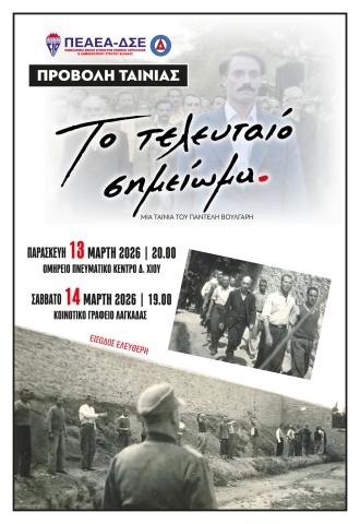 Η εκτέλεση των 200 κομμουνιστών την Πρωτομαγιά του 1944 η μαζικότερη που έγινε ποτέ στην Ελλάδα απασχολεί τον Παντελή Βούλγαρη στην ταινία "Το Τελευταίο σημείωμα".Δραματική/Ελλάδα/Έγχρωμη/2017. Διάρκεια 117'.