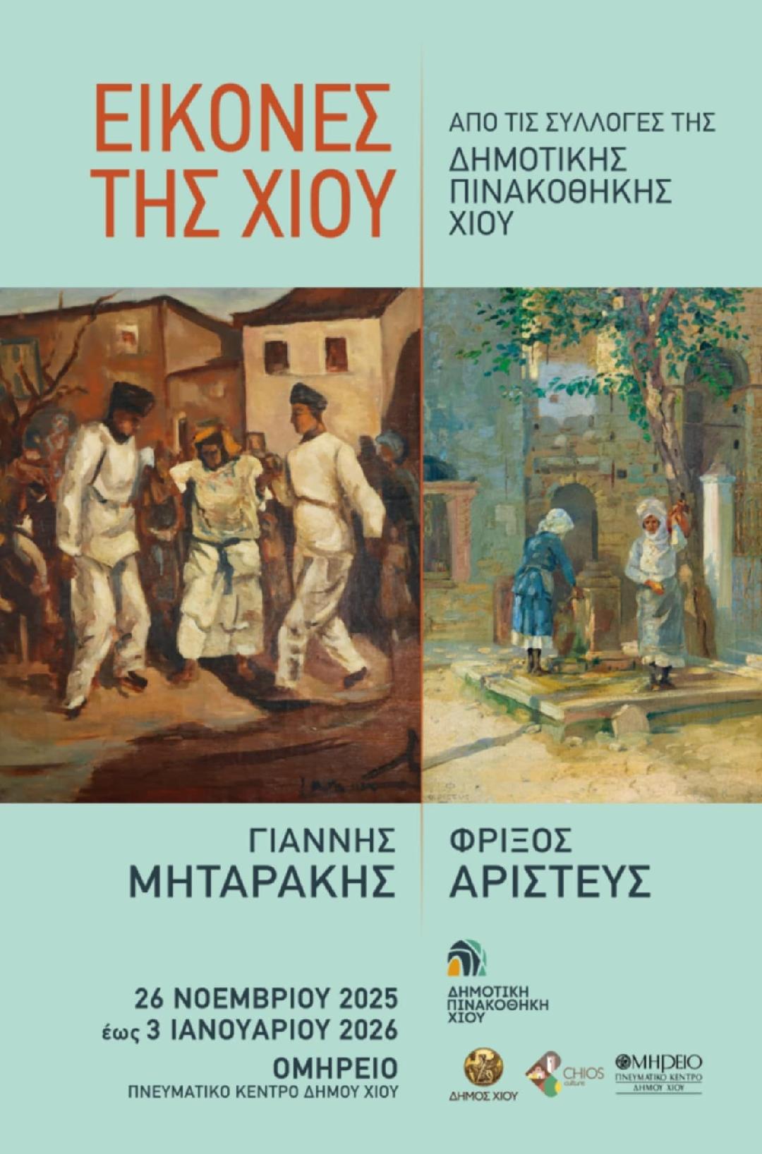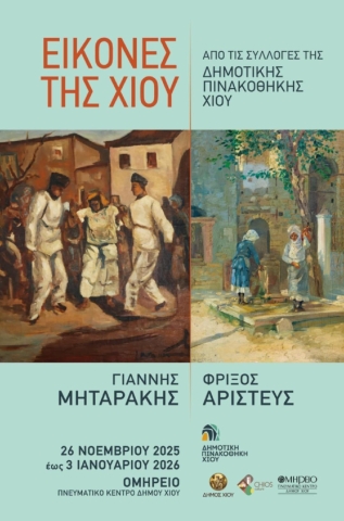 Το Ομήρειο Πνευματικό Κέντρο Δήμου Χίου και η Δημοτική Πινακοθήκη Χίου εγκαινιάζουν μια νέα περίοδο κατά την οποία σημαντικές ομάδες έργων της Πινακοθήκης θα εκτίθενται στις αίθουσες του Ομηρείου, οργανωμένες σε θεματικούς κύκλους η ανάλογα με τις Συλλογές που έχουν δωρηθεί στην Δημοτική Πινακοθήκη. Ως πρώτη τέτοια έκθεση παρουσιάζεται στο χιώτικο κοινό η έκθεση "Φρίξος Αριστεύς-Γιάννης Μηταράκης, Εικόνες της Χίου από τις Συλλογές της Δημοτικής Πινακοθήκης".