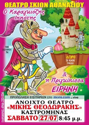 Το Θέατρο Σκιών του Γιώργου Αθανασίου παρουσιάζει τη περιπέτεια του αγαπημένου μας Καραγκιόζη με τίτλο "Ο ΚΑΡΑΓΚΙΟΖΗΣ ΙΠΠΟΤΗΣ"