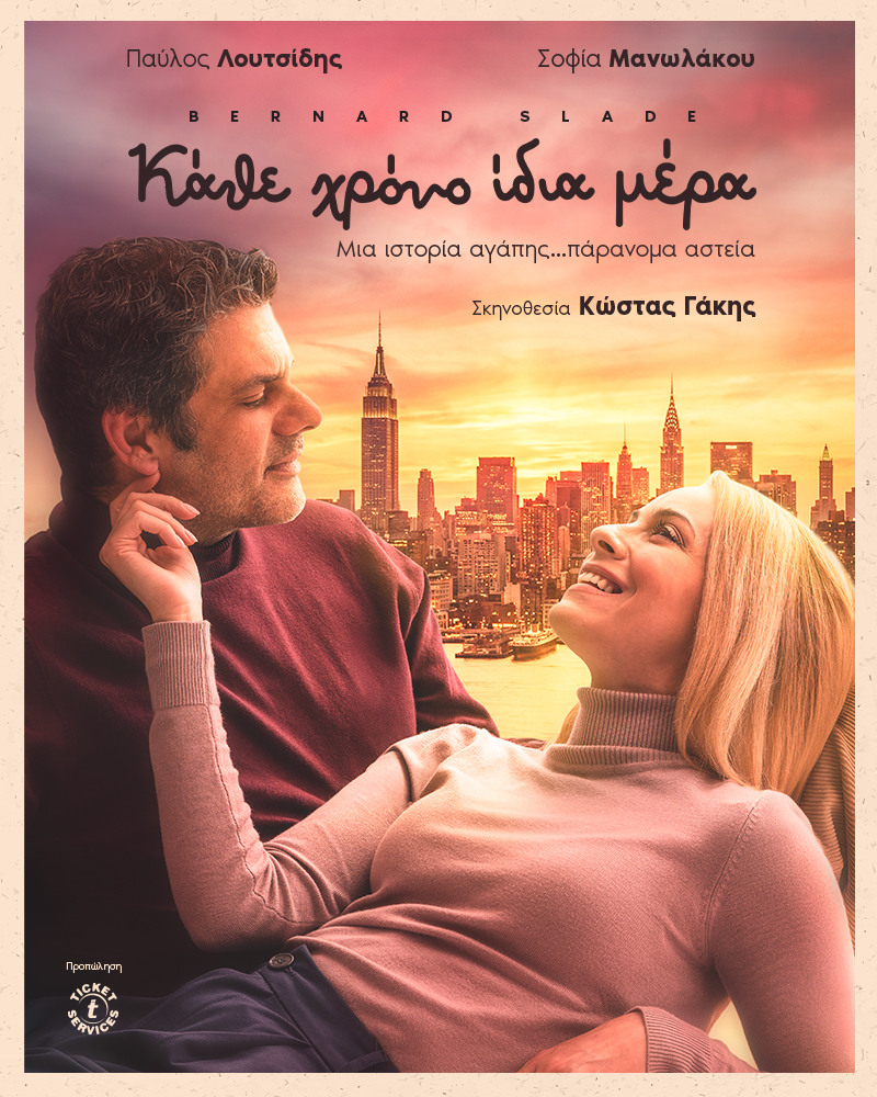 Παρουσιάζεται η θεατρική παράσταση με τίτλο "Κάθε μέρα, ίδια μέρα" του Bennard Slade σε σκηνοθεσία Κώστα Γάκη. Παίζουν: ο Πάύλος Λουτσίδης και η Σοφία Μανωλάκου.